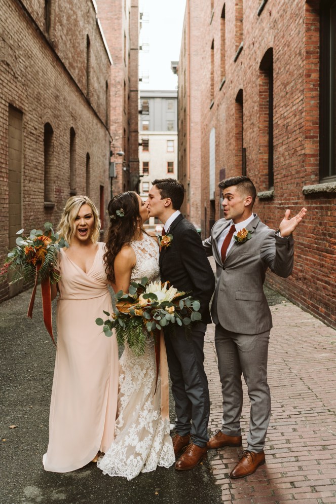 Surprise! We got married! Again! Except this time, there was nothing legal about it because, you know, we already covered that part the first time. Okay but actually, Alec and I were asked to be the bride and groom for The Big Fake Wedding Seattle and it was 1. such an honor 2. so much fun and 3. such a different vibe than our real wedding. Basically The Big Fake Wedding is a company that goes around the country and puts on “fake weddings” (literally the whole shabang…photos, ceremony, dancing, dinner) so that vendors in the industry in those cities can show off their mad skills and couples who are engaged in those cities can come to get inspo and meet vendors that they’d wanna hire for their own special day!