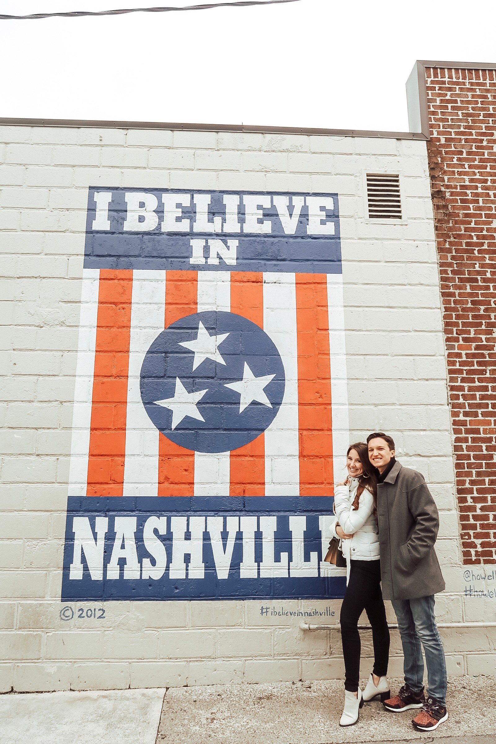 - Go to the murals! You have to get an Uber to the classic I Believe In Nashville wall mural and right across from it is Reese Witherspoon’s Draper James store that is home to the other infamous plus striped wall mural. I couldn’t bring myself to wait in line for the giant angel wing wall in The Gulch shopping area though…