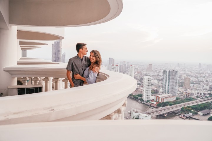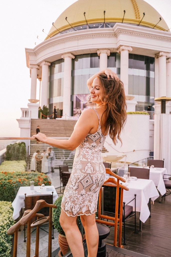We stayed at Lebua State Tower aka where they filmed Hangover II on that iconic rooftop, on those iconic stairs which, BY THE WAY, you are absolutely not allowed to take pictures on and they have loads of security up there to keep you from taking any pictures or videos on the stairs. Anyways, I digress. We were in a club level room so we were very fancy and got to take a separate elevator. We also had access to their Lebua No. 3 club lounge that had some morning snacks, afternoon tea, and evening appetizers. And drinks all day long so that’s a +. Our room was phenomenal. It had an entire sitting room, nook, full kitchen, full fridge, gorgeous marble bathroom with monogrammed towels, a separate bedroom and of course, the insane balcony that my scared-of-heights father wouldn’t even dream of getting near (even showing him the pictures made him queasy). There was only one major problem with this hotel…the food and drinks here were SO expensive!!! Keep reading to hear more…