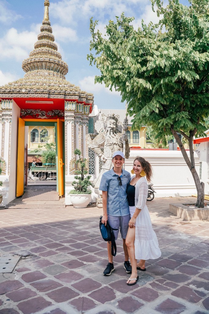 Wat Pho: This was the only temple we went by. We aren’t really big temple people and had no interest in going inside of them. We just walked around the outside of this one while my father in law went inside. We were going to check out a few of them just for the architecture, but it was sooooo hot and we were over it after just one. But while we were waiting for my father in law, a group of children who were learning English came up to us and wanted to take selfies with us and try to talk to us in English! So cute. Also, I have some tips below for visiting the temple though…