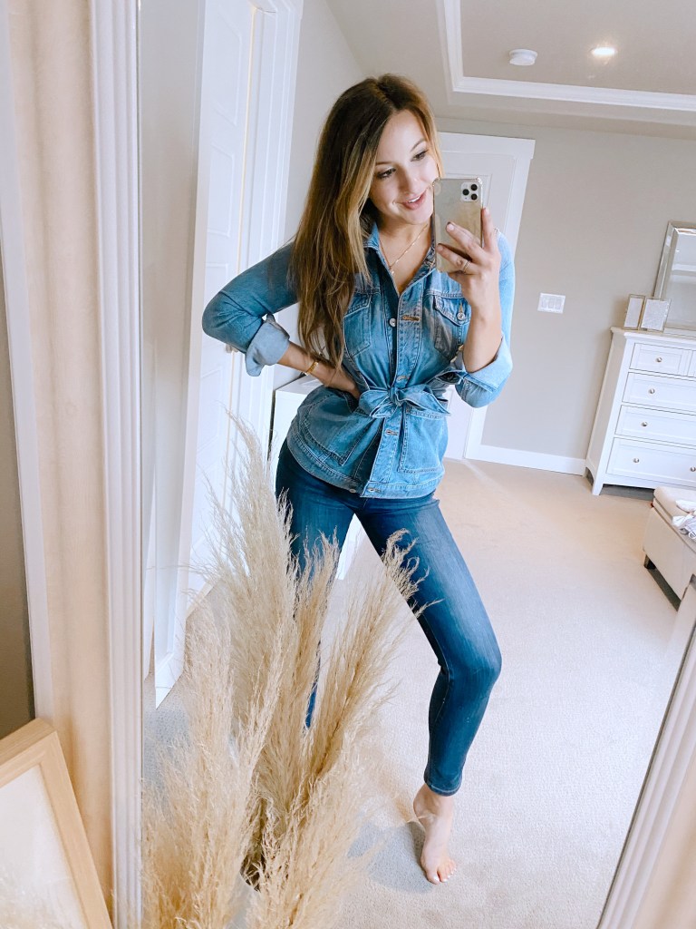 Okay to start off, I love love love this belted denim jacket. It fits like an absolute gloves, has a little stretch to it, is long enough for my long torso, and is SO flattering. I have started to become quite a denim jacket collector the past couple of years (I think I’m up to 10 lol) but every one of them is different and this is the perfect addition to my closet.