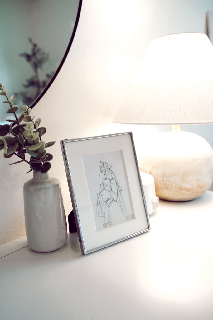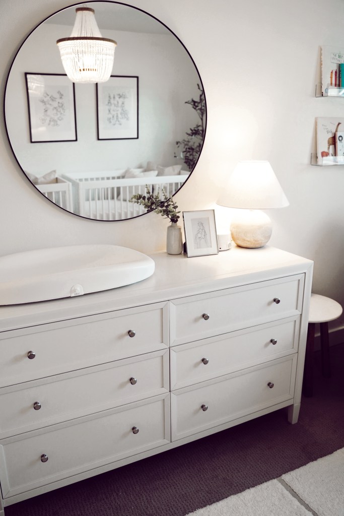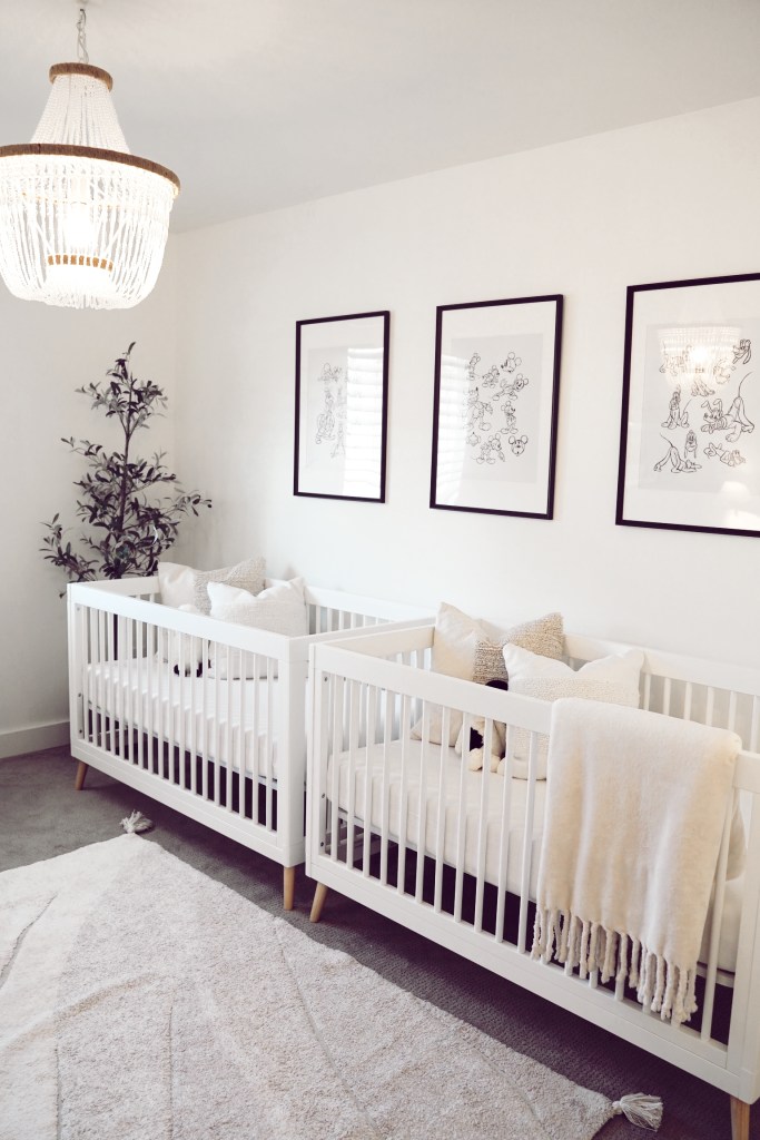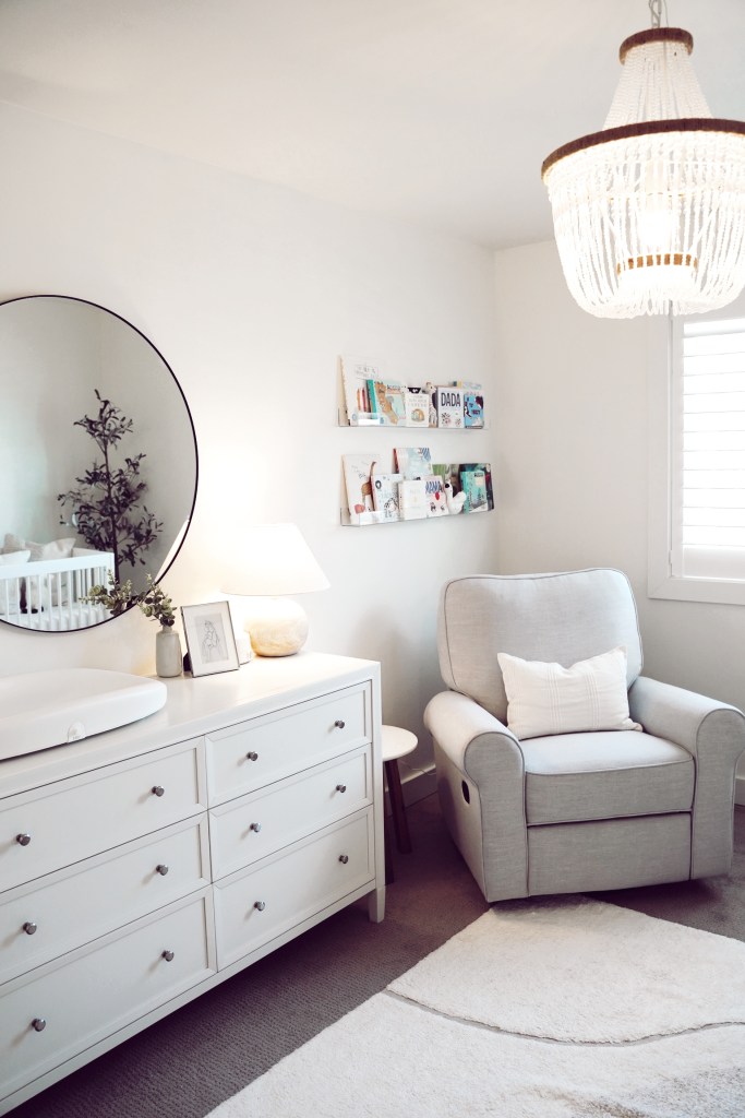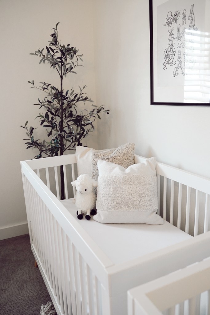 I am SO excited to finally share our baby nursery with you all. We have been slowly working on putting the pieces together and I finally feel ready to show it off. The *vibe* I was going for was really super calm hence all the white and as minimal as I could make it decor wise while still feeling cute and nursery-y. I wanted to have a subtle Disney theme thrown in there as well and could not be happier with the artwork that we had designed for the walls. I have everything linked below for you to check out and highly recommend watching the vlog to really take it all in!